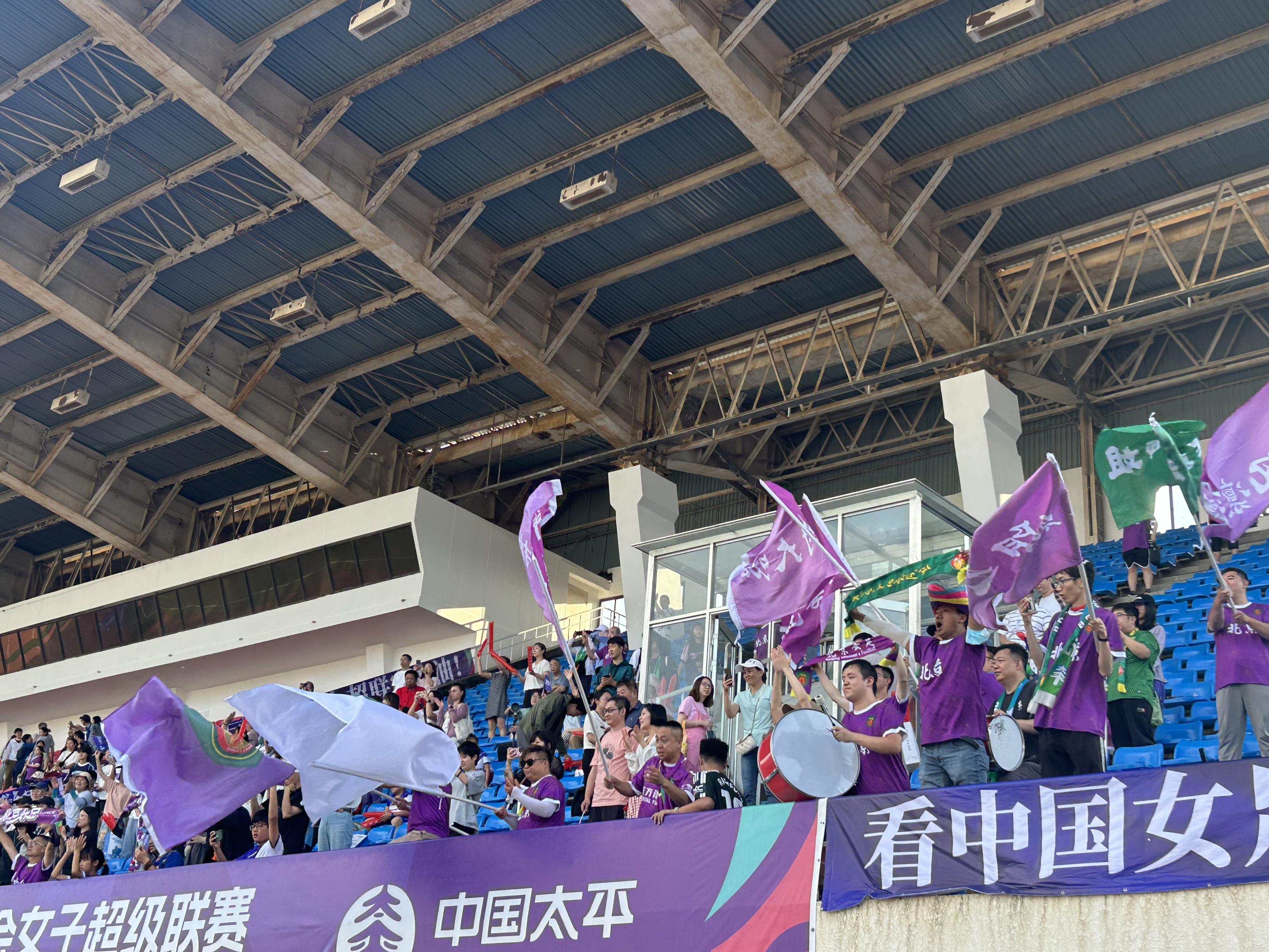 球迷在现场为北京女足呐喊。北京日报客户端记者 赵晓松 摄